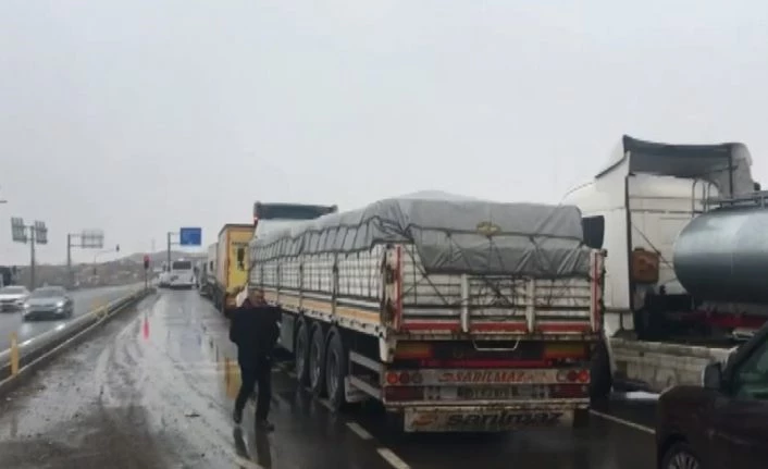 Öte yandan, karayolunda uzun araç kuyrukları oluştu.