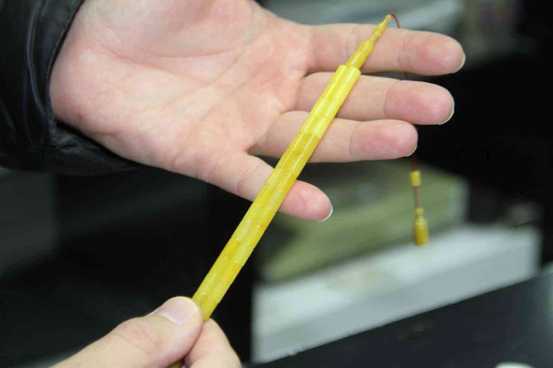 Tespihin Osmanlı sıkma kehribar olduğunu belirten Çetin Öz, “Tek parça habbeden usta işçilikli bir tespihtir. Bu ürünün malzemesi antika olan bir malzemedir. 150 yıllık bir malzemeden yapılan bir üründür. Osmanlı sıkmaların fiyatları altın gibidir. Gram fiyatı her geçen gün daha da yükselmektedir. Hatta koleksiyonerler para kazanmak için biriktiriyorlar bu tür malzemeleri. Bu malzemenin gramı ortalama bin 250 lira bandındadır” dedi.