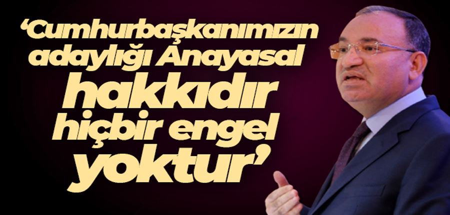 Cumhurbaşkanı Erdoğan'ın 2023 Seçimleri'nde Cumhur İttifakı'nın ortak adayı olduğunu söyleyen Bozdağ, “Adaylığı Anayasal bir hakkıdır. Hiçbir hukuki engel söz konusu değildir. Cumhurbaşkanımız devletin başı yürütme organı, Cumhurbaşkanlığı Hükümet Sistemi'nin ilk Cumhurbaşkanı olarak 2018'de seçilmiştir. Şu anda yapılacak seçim ikinci seçimdir. Devletin başı yürütme organı Cumhurbaşkanlığı Hükümet Sistemi'nin ikinci Cumhurbaşkanı olarak adaydır. İkinci adaylığıdır. Herhangi bir anayasal engel yoktur. Bu yorumu yapanlar yürürlük maddesine baktığında anayasanın 75-77 ve Cumhurbaşkanlığı Seçimi'ne ilişkin 101. Maddesinin yürürlük tarihini çok net bir şekilde 2018'de yapılan Cumhurbaşkanı Parlamento Seçimi ile yürürlüğe girdiğini ifade ediyor.