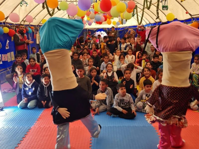 Şehr-i Bingöl Tiyatrosu ekibi, depremin vurduğu Adıyaman’da çadır kenti ziyaret ederek çocukları eğlendirdi.