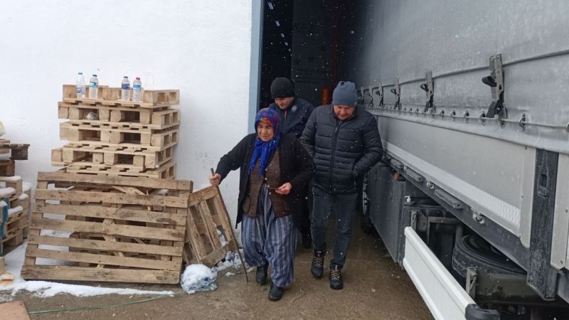 Kahramanmaraş merkezli 2 depremin ardından Bolu’dan deprem bölgesine kamyon ve tırlarla yardım gönderimi devam ediyor. Bolu merkeze bağlı Civril köyü yakınlarında bulunan AFAD yardım deposuna vatandaşlar her gün binlerce eşya getirip bırakıyor. Deprem noktasına ulaştırılmak üzere Bolu’dan sayısız kamyon ve tır harekete geçti. Civril köyünde ikamet eden 75 yaşındaki Fatma Ataş da depremzedelere yardım için elini taşın altına koydu. 75 yaşındaki Ataş, evinde bulunan bulgur, yağ gibi ürünleri yardım yapmak üzere poşete koydu. Fatma teyze, daha sonra deprem bölgesinde etkili olan soğuk havadan depremzedelerin üşümemesi için kendi ördüğü patik, yelek ve evinde bulunan diğer eşyaları da paketleyerek bir elinde baston bir elinde ise yardım paketleri ile AFAD deposunun yolunu tuttu. AFAD deposunda bulunan yetkililere eşyaları teslim eden Fatma teyze, “Düşeriz biz yine kalkarız, biz birbirimizi bırakmayız, bizim milletimiz Türk milleti” dedi.