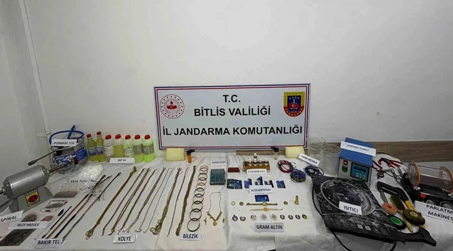 Bitlis İl Jandarma Komutanlığı Kaçakçılık ve Organize Suçlarla Mücadele Şubesi ekiplerince yapılan teknik ve fiziki takip sonucu, şüphelilerin gerçek gram altını eriterek bakır yoğunluklu materyallerle karıştırmak suretiyle sahte altın imal ettikleri ve piyasaya sürdükleri tespit edildi.