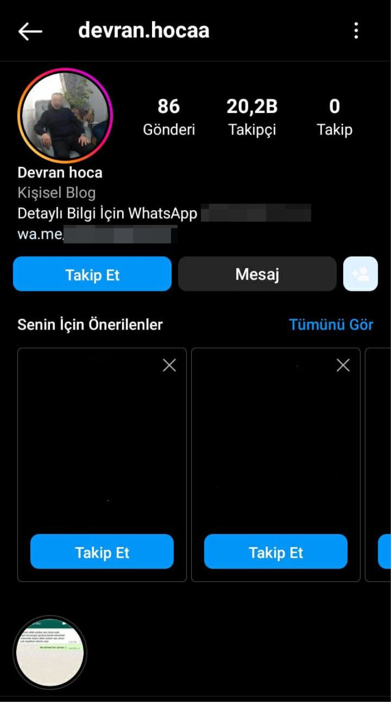 Hocanın daha önce de sosyal medya üzerinden birçok kişiyi dolandırdığını öne süren G.E., “Eşimle aram çok kötü idi. Bir arkadaşımın tavsiyesi üzerine Devran Yıldırım isimli şahıs ile iletişime geçtim. Hiç param yoktu. Bana eşimde büyü olduğunu söyledi ve büyüyü bozmak için para istedi. Ben ilk olarak zaten cevşen yapması için ödeme yapmıştım. Büyüyü bozmak için param olmadığını söyledim. Daha sonra cevşenimi göndermesini istedim. ’Gerek yok’ dedi. Ben de İslami usullere göre cevşeni kendim taşımam gerektiğini söyleyince beni her yerden engelledi. Çok pişmanım” dedi.
