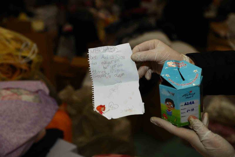 Mahmutbey Mahallesi’nde bulunan Osmanlı Arşivi Deposu da yardım toplama merkezi olarak kullanılıyor. İlçe sakinleri, kışlık giyecekten bebek mamasına kadar temel ihtiyaç malzemelerini buraya getirerek görevlilere teslim ediyor. Depodaki yardım kolilerinin içinden çıkan ve İlkokul öğrencisi Azra tarafından yazılan not ve yanındaki minik kumbara herkesi duygulandırdı. Azra’nın yazdığı notta, “Merhaba ben Azra. Size dua ediyorum. Bir yardım etmek istiyorum. Geçmiş olsun” ifadeleri yer aldı. Notu gören görevliler duygu dolu anlar yaşadı. Açılan kumbarada da bozuk paralar olduğu görüldü.