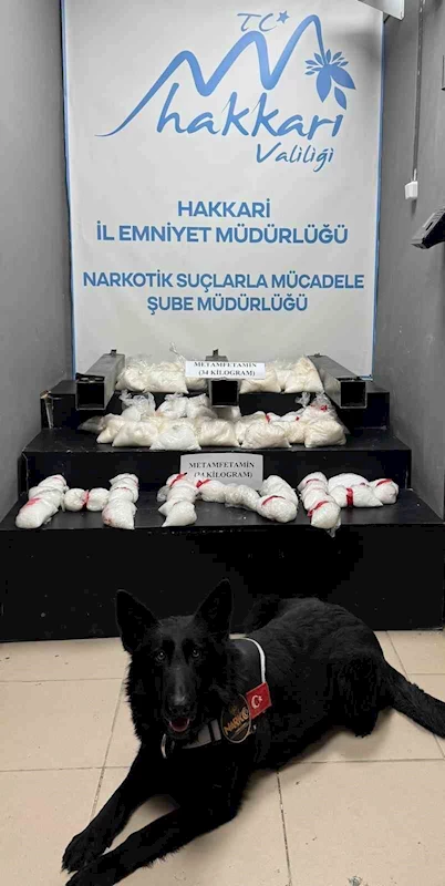 Hakkari’de durdurulan aracın özel bölmesine gizlenmiş 34 kilogram metamfetamin maddesi ele geçirildi.