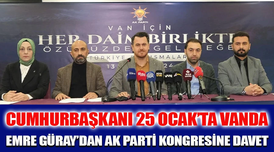 AK Parti Van İl Başkanı Emre Güray, 25 Ocak Cumartesi günü düzenlenecek olan 8. Olağan İl Kongresi için davet yaparak, Cumhurbaşkanı Recep Tayyip Erdoğan'ın katılımını onayladığını duyurdu.