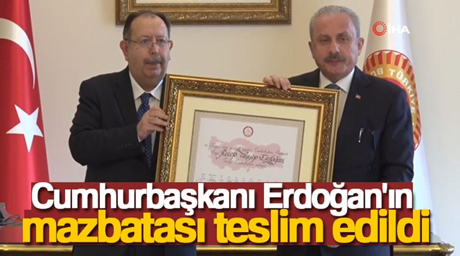 Cumhurbaşkanı Recep Tayyip Erdoğan’ın mazbatası TBMM Başkanı Mustafa Şentop’a teslim edildi.
