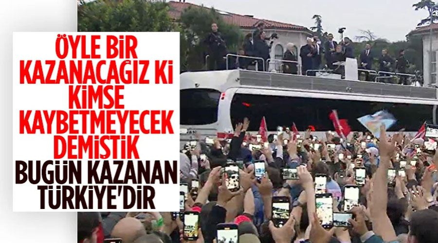 Cumhurbaşkanı Erdoğan, seçim zaferinin ardından Kısıklı'daki konutunun önünde halka hitap ediyor. Erdoğan, ''Cumhurbaşkanlığı Seçimi'nin ikinci turunu milletimizin teveccühü ile tamamlamış bulunuyoruz. Demokrasi bayramı yaşatan milletime şükranlarımı sunuyorum. İradesini ortaya koyan tüm vatandaşlarıma şükranlarımı sunuyorum'' ifadelerini kullandı.