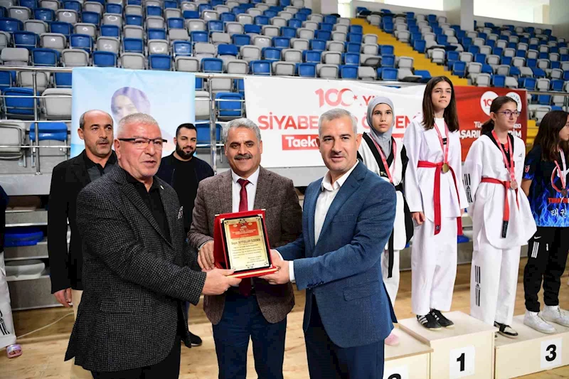 Yeşilyurt Belediye Başkanı Mehmet Çınar, konuşmasından sonra ‘Siyabe Nur Özdemir’ Tekvando Turnuvasında emeği geçenlere teşekkür plaketi takdim etti.
