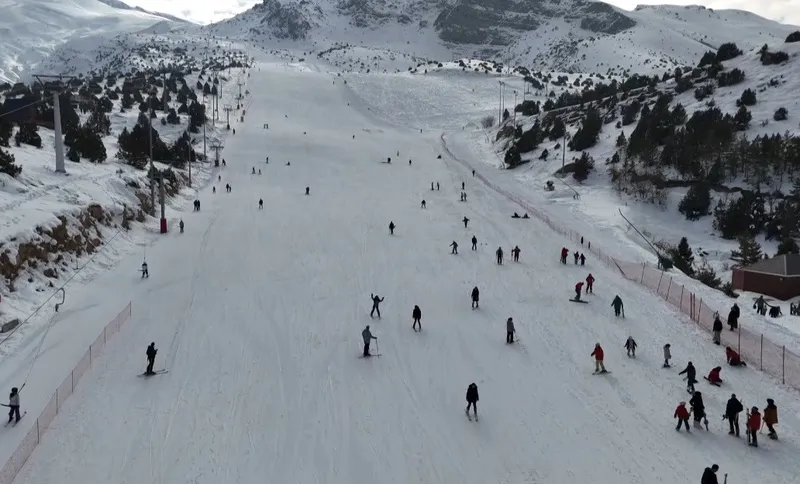 Türkiye’nin önemli kayak merkezlerinden birisi olan Erzincan’daki Ergan Kayak Merkezi, hafta sonu tatili dolayısıyla kayak severlerle dolup taştı.