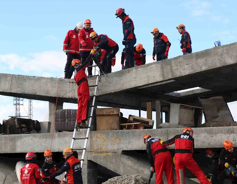 Çağlayan yolu üzerindeki AFAD Lojistik Depo alanında oluşturulan sahada AFAD, UMKE, ACAR, 112, itfaiye, emniyet, jandarma, STK ve diğer meslek gruplarından personellerin katılımlarıyla gerçekleşen tatbikat provası tam not aldı.