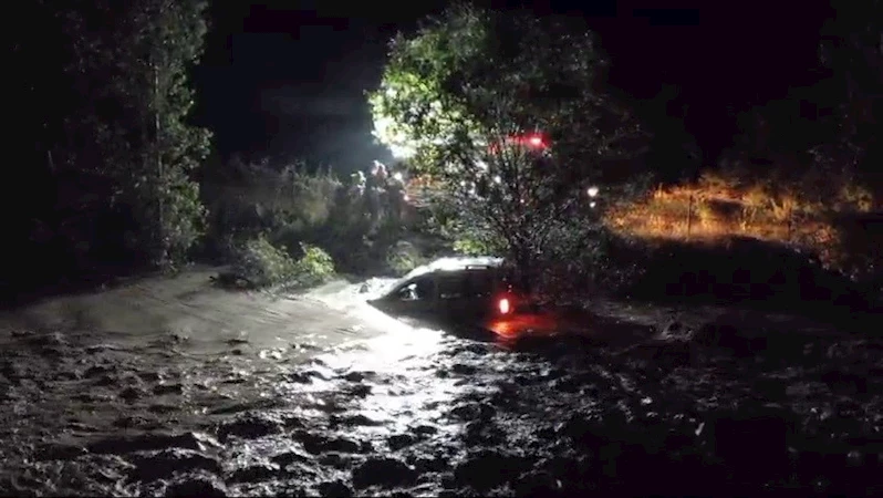 Erzurum-Artvin karayolunda meydana gelen heyelan yolda seyreden otomobili dere kenarına sürükledi. Sürücü kurtarılırken, otomobilde bulunan anne ve kızı düştükleri derede kayboldu.