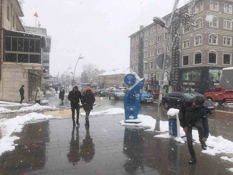 Erzurum’da Mart ayının son haftasına girilirken lapa lapa yağan kar kenti beyaza bürüdü.
