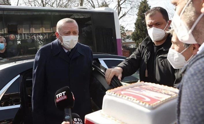 Cumhurbaşkanı Recep Tayyip Erdoğan, evinin yakınındaki pastane çalışanlarının kendisinin doğum günü için hazırladığı pastayı kesti.