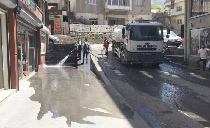 Hakkari Valisi ve Belediye Başkan Vekili İdris Akbıyık’ın talimatları üzerine korona virüse karşı alınan tedbirler doğrultusunda kent merkezinde denetimler, dezenfekte çalışmaları ile cadde ve sokakların köpüklü suyla yıkama çalışmaları devam ediyor. Belediye ekipleri tarafından halkın ortak kullanımındaki otobüs durakları, umumi tuvaletler, bankamatikler, çöp konteynerleri ve çarşı merkezi başta olmak üzere onlarca farklı noktada dezenfeksiyon çalışması yapıldı.