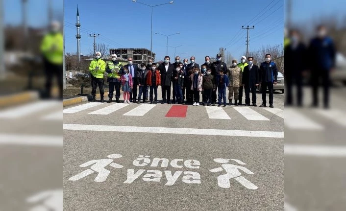 Horasan’da yaya geçitlerinde ’Kırmızı çizgi’ etkinliği