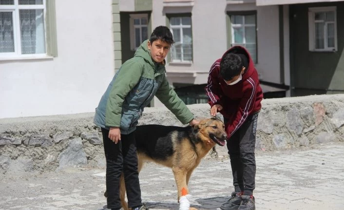 İşkence edilen köpeğe çocuklar sahip çıktı