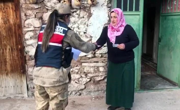 Kısa sürede pandemiye dönüşen korona virüs (Covid-19) karşısında sıkı tedbirler alınırken, son olarak Aile, Çalışma ve Sosyal Hizmetler Bakanlığı tarafından mağdur vatandaşlara verilen bin TL’lik destek ödemeleri de evlerde teslim ediliyor. Malatya’da İl Jandarma Komutanlığına bağlı kadın astsubaylar da gece gündüz mesai dinlemeksizin kırsal mahallelerde bulunan hak sahiplerini tek tek ziyaret ederek halkın maaşlarını ve yardım paralarını iletiyor.