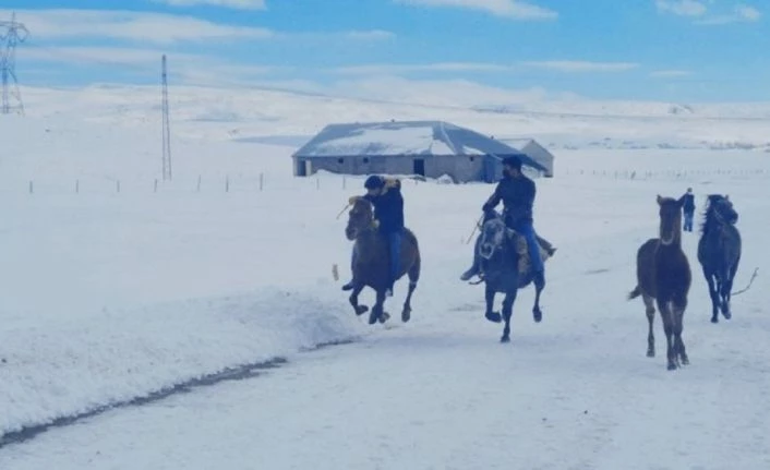 Atların yaz aylarında düzenlenen yarışlara hazırlandığını belirten köy muhtarı Mehmet Ali Batur, “Atlar yazın yarışa giriyor, bizim köyde yarış var. Kışın besliyorlar, bakıyorlar" dedi.