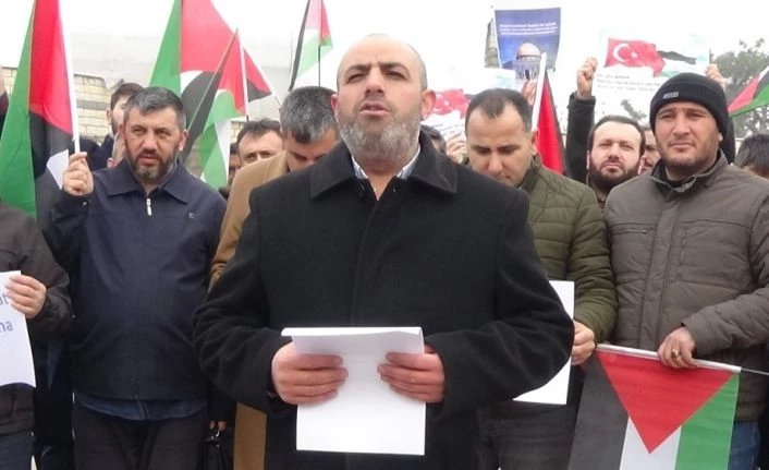 “Sömürgeci ABD’nin kovboy ruhlu kapitalist Başkanı Trump, bu sözde barış planı ile Filistin halkının varlığını tümüyle ortadan kaldırmak istemektedir” diyen Aydın, “Trump, bir taraftan Filistin için kapalı kapılar ardında hazırlanan yeni işgal senaryolarını süslü sözler eşliğinde tüm dünyaya takdim etmekte diğer yandan Filistinlilere refah düzeyi yüksek bir gelecek vaat ederek iradelerini satın almaya çalışmaktadır. Filistin Devlet Başkanının ‘tüm varlığımızla bu planı reddediyoruz’ açıklamasına biz de yürekten katılıyor ve bütün bir İslam âlemini bu hain planı elbirliği ile reddetmeye çağırıyoruz. İfsadı ıslah olarak takdim etmek, aziz kitabımız olan Kur’ân’da şeytanın ve münafıkların bilindik karakteri olarak geçer. Büyük şeytan Amerika ve din münafığı Siyonist İsrail, tüm dünyayı kandırmakta ve mahza ifsat olan bu projeyi ‘barış planı’ yutturmacasıyla ıslah olarak takdim etmektedir” ifadelerini kullandı.