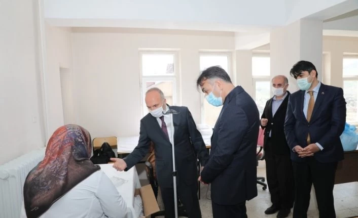 Bitlis Valisi Oktay Çağatay, Halk Eğitim Merkezi Müdürlüğündeki maske dikim atölyesini ziyaret etti.