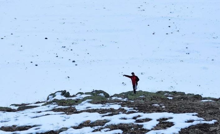 Erzurum’da kış aylarında yaban hayatta hayvanların açlıktan ölmemesi için 6 yıl önce başlatılan ve bunu geleneksel hale getiren macera severler Erzurum Büyükşehir Belediyesi Off-Road Doğa Sporları Kulübüne bağlı üyeler, karla kaplı dağlara yiyecek bıraktı.