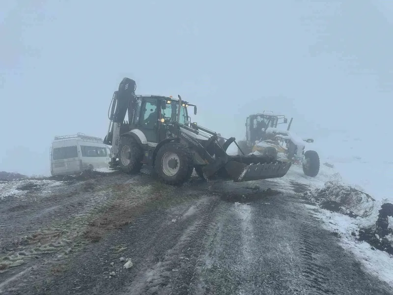 Iğdır’da yoğun kar yağışı: 57 köy yolu ulaşıma kapandı, şarampole devrilen minibüs kurtarıldı