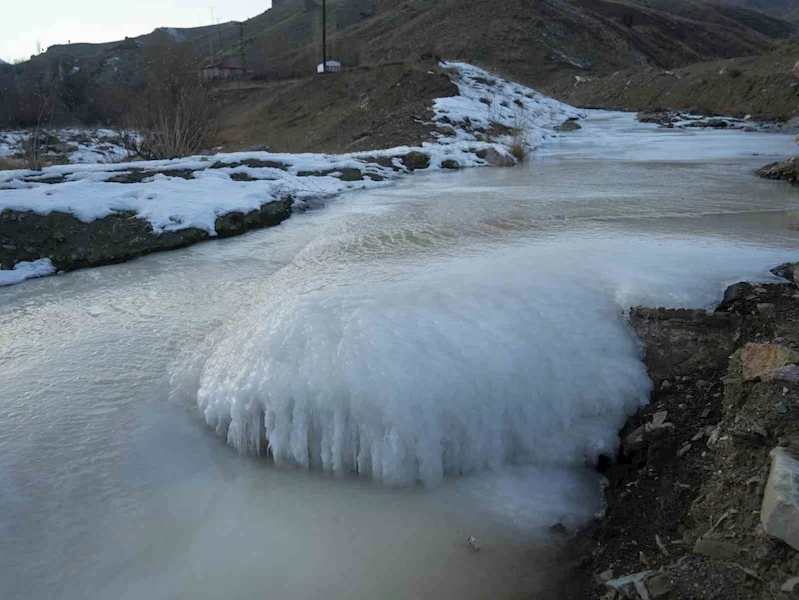 Iğdır’ın yüksek kesimlerinde etkili olan soğuk hava şartlarından dolayı akarsular dondu.