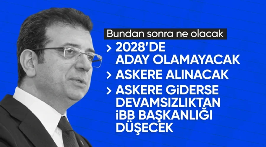 Diploma iptaliyle birlikte İmamoğlu'nun askerlik durumu da yeniden gündeme geldi. Üniversite diplomasını kullanarak bedelli askerlik yapabilen İmamoğlu, bu hakkı kaybetmiş oldu. Milli Savunma Bakanlığı'nın harekete geçmesi durumunda İmamoğlu'nun yeniden askere alınması olasılığı ortaya çıkıyor.