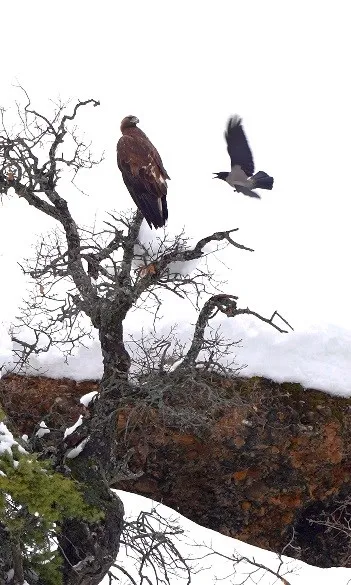 Tunceli’de bir karganın, bir kartalla oyun oynar gibi sergilediği sıra dışı anlar kameraya yansıdı.