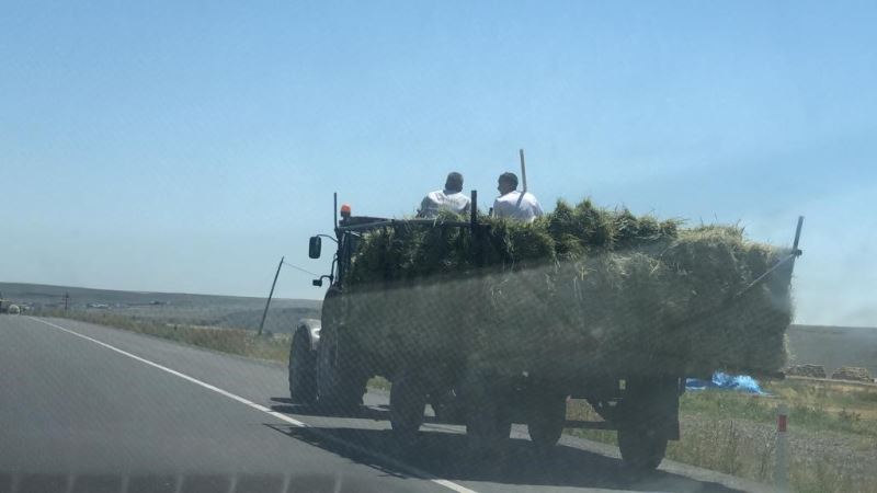 Kars’ta biçin zamanının başlamasıyla birlikte tarladaki mahsulünü toplayan vatandaşlar traktör römorklarına yükledikleri otların veya ot balyalarının üzerinde oturarak karayoluna çıkarak yolculuk yapıyor. Vatandaşların tehlikeye aldırış etmeyen umursamaz tavırlarla ise adeta yürekleri ağızlara getiriyor.