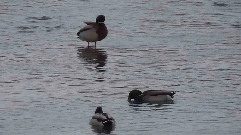 Kars’ta yaban hayatı şehre indi: Yeşilbaş ördeklerin yemek mesaisi kamerada