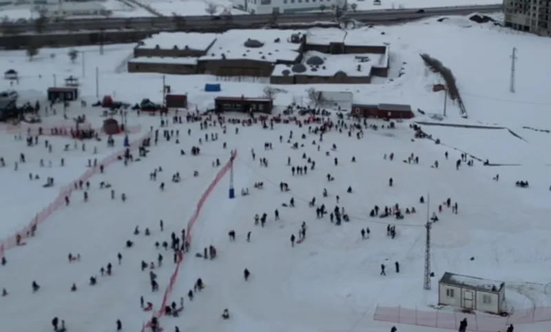 Kente merkezindeki El Aman Kayak Merkezi’nde kar yağışının ardından oluşan elverişli pist şartları; kayak, kızak ve snowboard tutkunlarını merkeze çekti. Aileleriyle birlikte gelen ziyaretçiler, hem kayak yaptı hem de kış manzarasının keyfini çıkardı. Kayak pistlerinde yaşanan yoğunluk havadan görüntülenirken, ortaya renkli ve hareketli görüntüler çıktı.