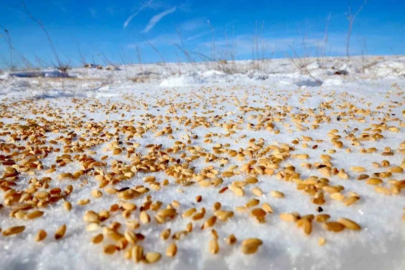 Malatya’nın Darende ilçesinde etkili olan kar yağışı sonrası yaban hayvanlarının beslenmesi için doğaya buğday ve ekmek bırakıldı.