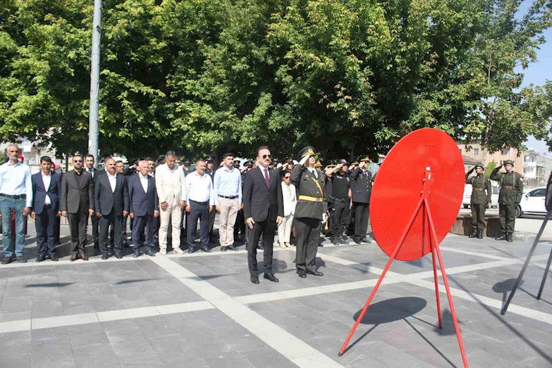 Malazgirt ilçesinden Dumlupınar’a uzanan kutlu bir destan olan 30 Ağustos Zafer Bayramı’nın 102. yıl dönümü etkinlikleri kapsamında çelenk sunma töreni Cumhuriyet Meydanı’nda gerçekleştirildi. Saygı duruşu ve İstiklal Marşı’nın okunmasının ardından günün anlam ve önemini belirten konuşmaların ardından tören sona erdi.