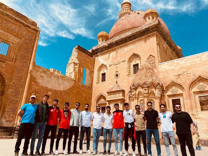 Kredi Yurtlar Genel Müdürlüğü Spor Oyunları Futbol Turnuvası için Ağrı’ya gelen misafir öğrenciler, tarihi İshak Paşa Sarayı’nı gezerek unutulmaz bir deneyim yaşadı.