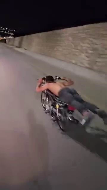 Elazığ’da motosikleti üzerine uzanarak kullanan şahıs canını hiçe sayarken trafiği de tehlikeye attı.