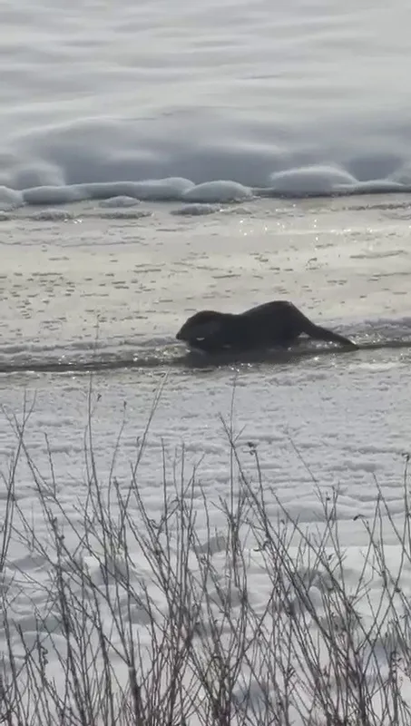 Ağrı’nın Taşlıçay ilçesinde iki su samuru Murat Nehri’nde yiyecek ararken görüntülendi.