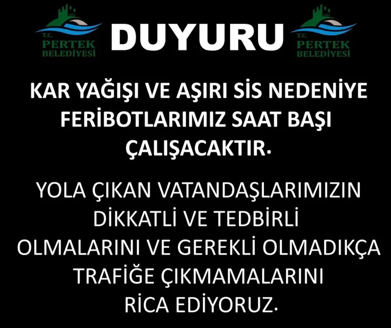 Kar yağışı ile sis nedeniyle Pertek feribotları saatte bir yapılmaya başlanırken Çemişgezek feribotları ise geçici süre durduruldu.