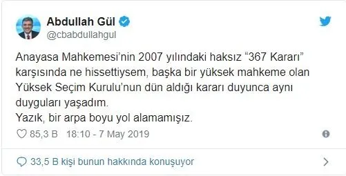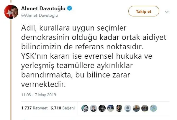 YSK'nın bu kararı ise bazı çevreleri rahatsız etti. Sandıktaki hırsızlığa, yolsuzluğa ses çıkarmayan Abdullah Gül ve Ahmet Davutoğlu YSK'nın hukuku çalıştırmasına karşı çıkıyor.