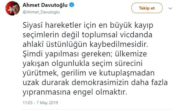 Twitter üzerinden açıklamalarda bulunan Gül, YSK'nın kararını Anayasa Mahkemesi'nin 2007 yılındaki 367 kararına benzetirken Davutoğlu ise seçimlerin yenilenmesinin "Evrensel hukuka ve yerleşmiş teamüllere aykırılıklar barındırmakta" olduğunu söyledi.