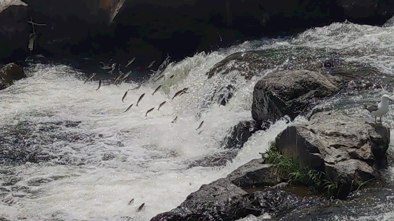 Dünyada sadece Van Gölü’nde yaşayan ve yılın belli döneminde üreme için suyun akışının tersine yüzerek tatlı sulara göç eden inci kefalinin zorlu yolculuğu, vatandaşlara görsel şölen sunmaya devam ediyor.