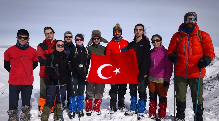 Van Büyükşehir Belediyespor Dağcılık Ekibi, 6 Şubat deprem şehitlerini anmak için 3204 metre yüksekliğindeki Erek Dağı'na zorlu kış tırmanışı gerçekleştirdi.