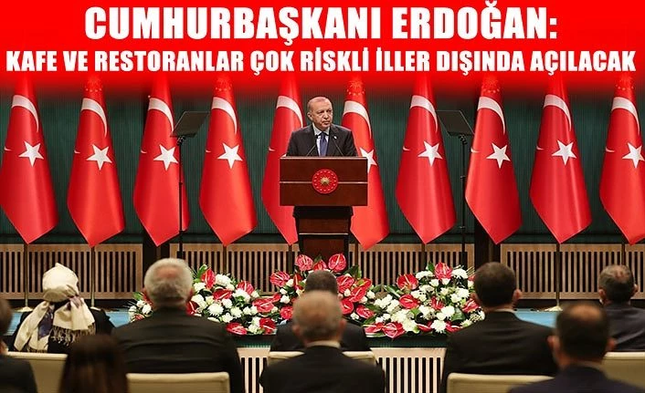 Erdoğan'ın açıklamasında, kafe, restoran ve kıraathanelerin çok riskli iller dışında sabah 07.00 - akşam 19.00 saatleri arasında yüzde 50 kapasite ile açılacağını duyurdu.