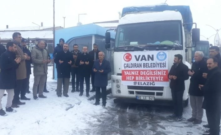 Çaldıran Belediyesinin yaptığı çağrılara kayıtsız kalmayan vatandaşlar, başlatılan yardım kampanyasına yoğun ilgi gösterdi. Yaşanan depremden dolayı evlerine giremeyen ve havaların soğuk olması nedeniyle zor zamanlar geçiren Elazığlı afetzedelere ulaştırılmak üzere kuru gıda, ısıtıcı, kışlık giyecek ve battaniye yardımından oluşan bir kamyon malzeme toplandı. Yardım kamyonu, İlçe Müftü Vekili M. Emin Avcı’nın okuduğu dualarla AFAD yetkililerine teslim edilmek üzere yola çıktı.