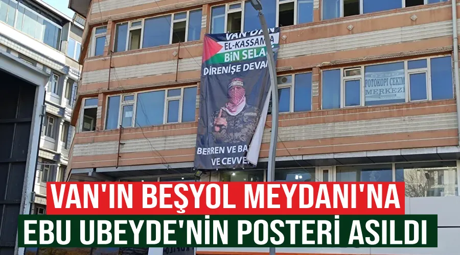 Asılan posterde Ebu Ubeyde'nin, meşhur olan fotoğrafı ve “Van'dan El kassam'a bin selam, direnişe devam", “Berren ve Bahren ve Cevven" ifadeleri yer aldı.