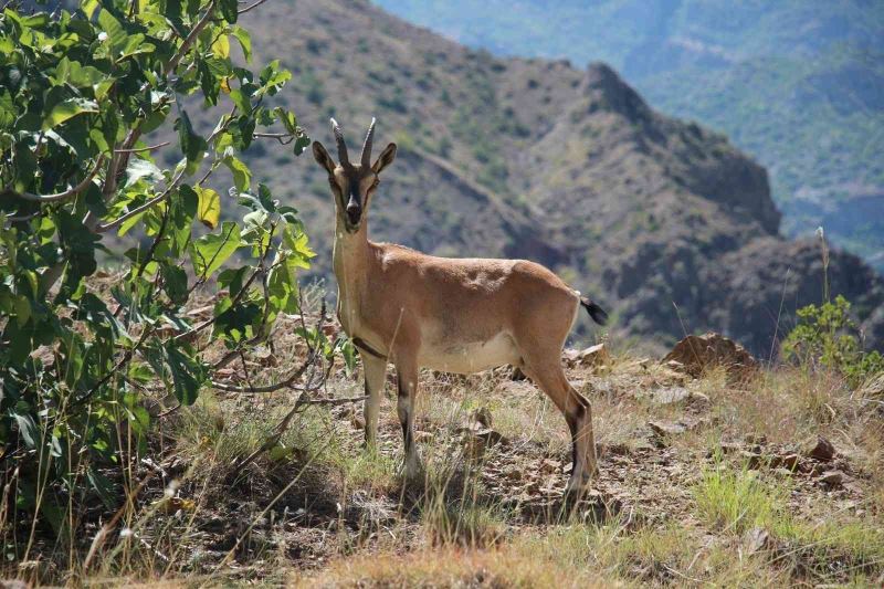 Erzincan’da avlanması yasak ve koruma altında olan yaban keçileri, Munzur Dağları’ndaki yaylalarda beslenirken görüntülendi.