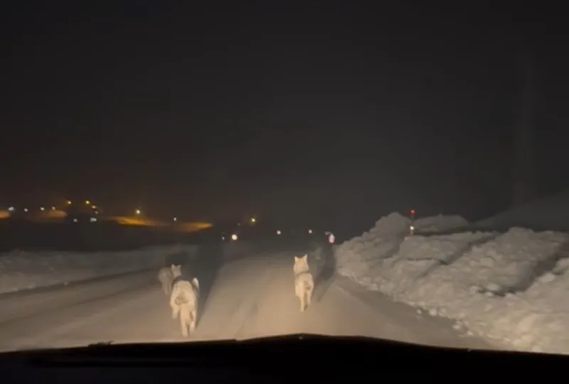 Akşam saatlerinde seyir halindeki bir araçta bulunan vatandaşlar, yol kenarında hareket eden kalabalık kurt sürüsünü fark etti. Bir süre yol boyunca ilerleyen ve yiyecek aradıkları gözlenen kurtlar, araç ışıklarına aldırış etmeden bölgeden uzaklaşarak gözden kayboldu.
