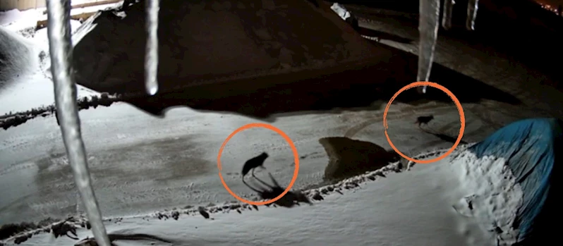 Hakkari’nin Yüksekova ilçesinde Esendere yolu üzerinde bulunan maden tesisine giren iki kurt güvenlik kamerasına yansıdı.