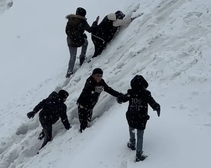 İlçe merkezinde öğle saatlerinde başlayan ve kısa sürede etkisini artıran kar yağışı, hayatı olumsuz etkilese de çocukların eğlencesi oldu. Tatilin tadını çıkarmak isteyen bir grup çocuk, mahalle yakınlarındaki karlı yamaçlara çıkarak kendi imkanlarıyla oluşturdukları parkurda doyasıya eğlendi.